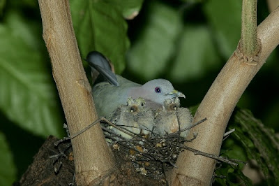 This is my detailed obervations of the nesting of the Pink-necked Green Pigeon (Treron vernans) in Singapore. For those who want a quick idea of what it is like to observe this dedicated pair tend to their young, watch my youtube video first. I have 11 video segments in all, this is just one of them... http://www.youtube.com/watch?v=HNp-3eDerss